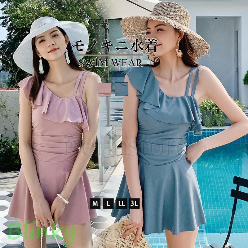 新作水着 レディース 体型カバー ワンピース 水着 モノキニ 水着 オフショルダー フリル バンドゥ ビキニ フレア 一体型 ビーチ リゾート