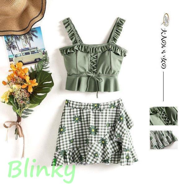 夏新作新レディース水着お腹カバービキニタンキニ可愛い花柄着やせプチプラ2点セット海プール