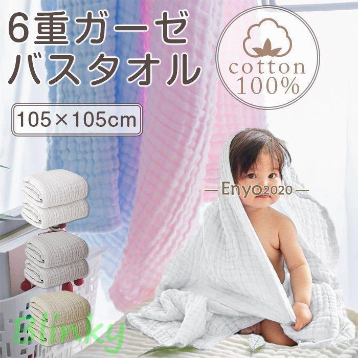 ベビー バスタオル ガーゼタオル ガーゼ タオル 赤ちゃん 湯上がり 6重ガーゼ 105×105cm 正方形 2枚セット 3枚セット