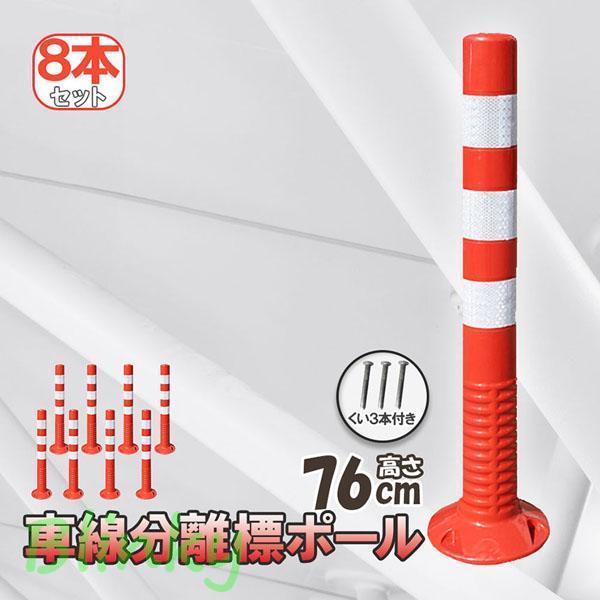 車線分離標 車線分離標ポール 76cm 8本セット コーンポスト 視線誘導標 ガードポール 反射 ポスト 駐車場 目印 車止め 通行止め 区切り