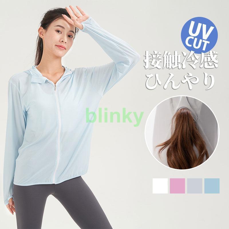 ラッシュガード レディース 長袖 アイスシルク パーカー UPF50+ フード付き 接触冷感 日焼け止め 紫外線対策 サマー 体型カバー ジップアップ 薄手