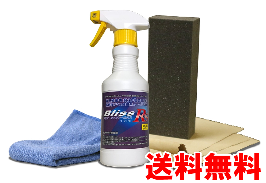 自己修復性耐スリ傷塗装対応高密度ガラス繊維系コーティング剤 ブリスtypeRS容量: 240ml = 普通乗用車で約12回使用できますついにコーティング剤は、ここまで進化した!シリーズ最高の輝度!光沢を求める方にもオススメ!※耐スリ傷性塗装以外の車にも使用できます。効果期間 12ヶ月以上コーティング後のボディーは、疎水性になります。高密度ガラス繊維系ポリマー ブリスtypeRS 240ml 8,580円(税込)スーパーゴールドクロス(500mm×400mm)3,278円(税込)コーティング専用スポンジSP 638円(税込)Blissステッカー付送料 700円(税込)合計:13,196円(税込)のところ、12,018円(税込)送料無料で販売いたします。濃色車は、洗車時に繊細傷が付きやすく丁寧なコーティング作業が必要となりますので精度の高い「SPセット」でのコーティング作業をお奨め致します。セルフリストアリングコート搭載車種 2015〜トヨタ:アルファード・ヴェルファイア・エスクァイア・クラウン・ヴォクシー・ノア・SAI・MIRAIレクサス:LS・IS・HS・GS・RX・SC・NX・RC・CTその他メーカーの自己修復性耐スリ傷塗装にも適合しています。※一部、年式・カラーによりセルフリストアリングコートではない車種もあります。詳しくは製造メーカーにお問い合わせ下さい。全色対応※耐スリ傷性塗装以外の車にも使用できます。