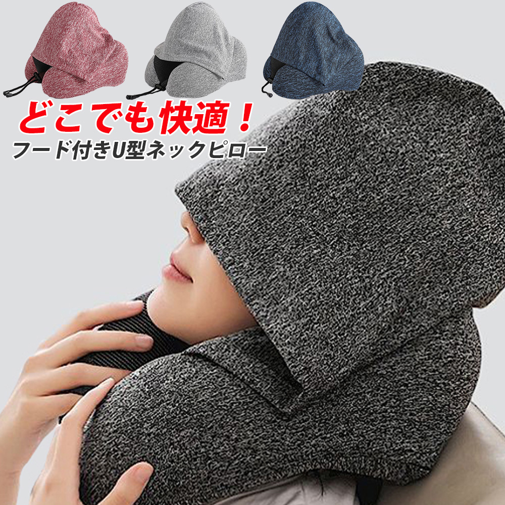 ネックピロー フード付き 低反発 首枕 飛行機 旅行 便利グッズ 旅行グッズ トラベルグッズ 携帯枕 便利グッズ 仮眠 快眠 トラベルピロー KAN002806