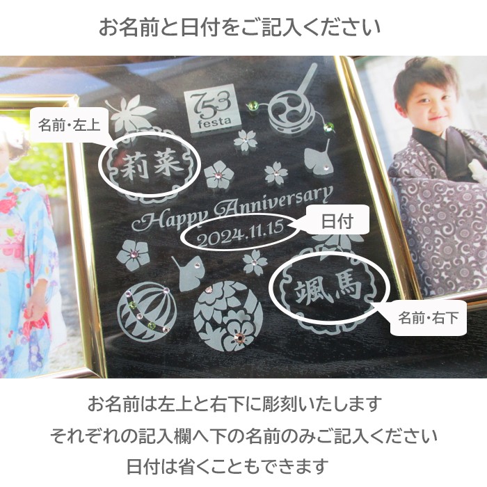 Happy Anniversary と 753festa のロゴは標準で彫刻致します