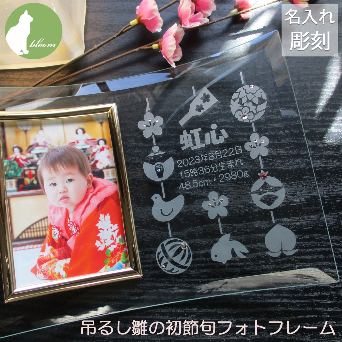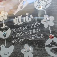 ガラス製のフォトフレームにお子様のお名前と出生データなどを彫刻したフォトフレームです。