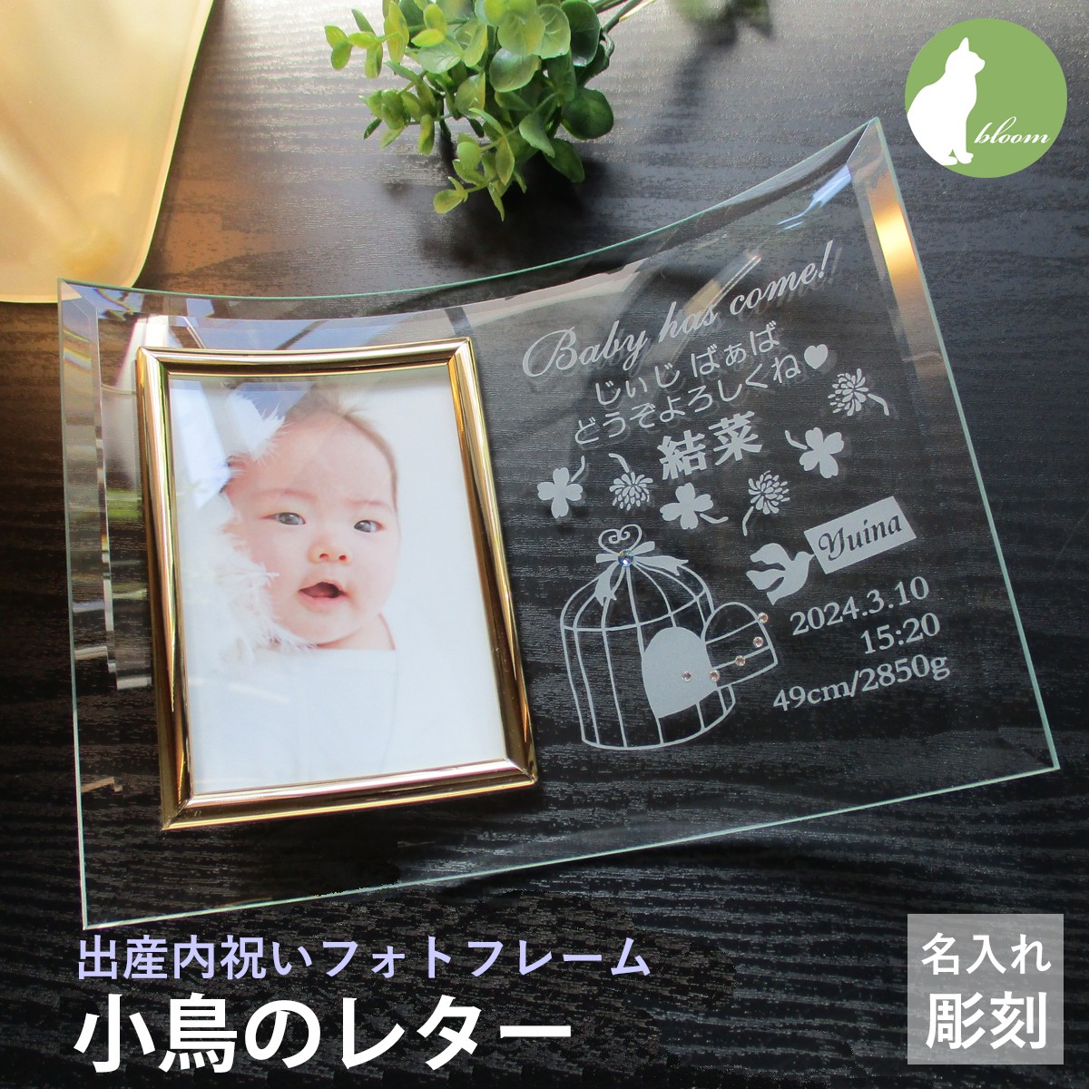 色褪せることのないガラス彫刻は赤ちゃん誕生のお祝いに最適です