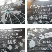 贈る相手の呼び名とメッセージ、赤ちゃんのお名前・生年月日・出生時刻・身長・体重を彫刻いたします