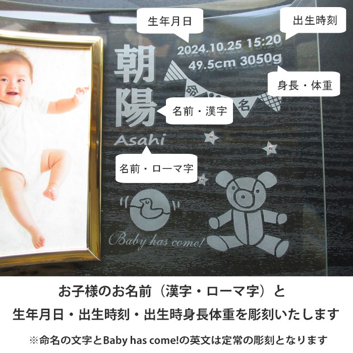 ※「命名」の文字とBaby has come!の英文は定常で彫刻いたします。