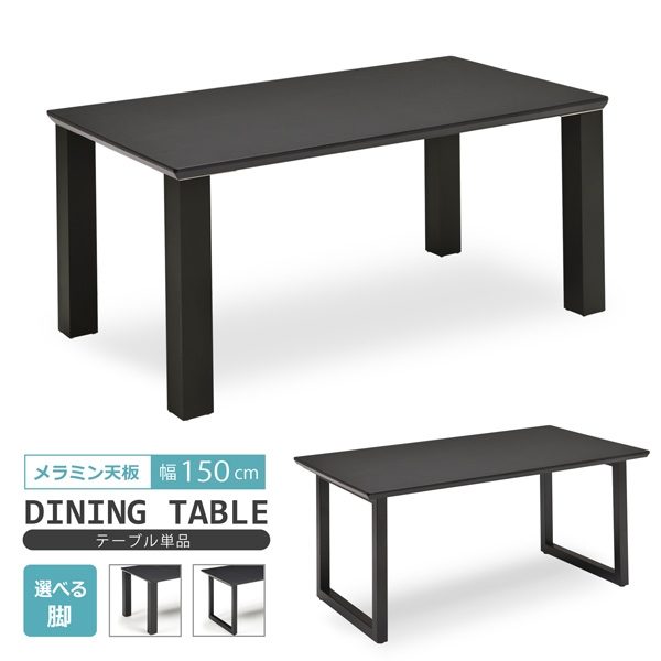 ダイニングテーブル 食卓テーブル 幅150cm メラミン天板 アイカ工業 天板国内生産 レザー調ブラック メラミントップテーブル モダン 高級感 テーブル単品