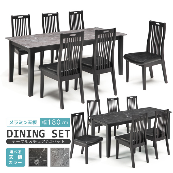 ダイニングセット 7点 幅180cm 6人掛け ダイニングテーブルセット メラミン天板 石目調 ストーン柄 ダイニングチェア ハイバック 高級感 おしゃれ モダン
