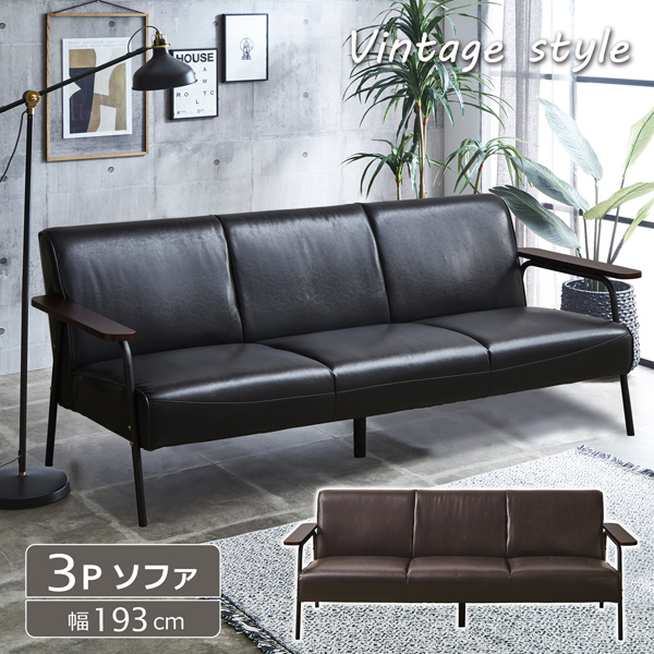 ソファ ソファー 3人掛け 三人掛け 3P ヴィンテージ ビンテージ バイキャストPVC アイアン 木肘付き ブルックリン インダストリアル 男前 かっこいい 座りやすい ワンルーム 爆買