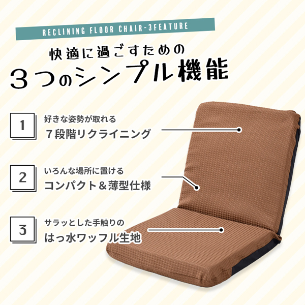 座椅子 リクライニング 7段階 1人掛け フロアチェア ファブリック 撥水 シンプル コンパクト 日本製 シンプル