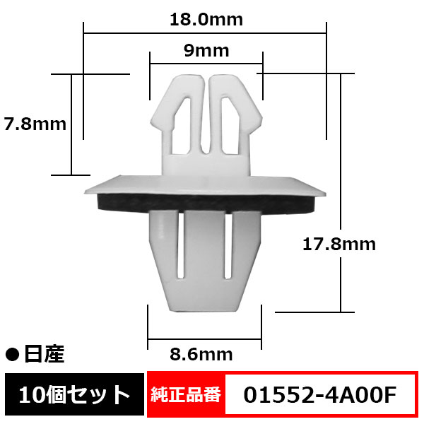 カウルパネルクリップ トリムクリップ カーファスナー 純正品番 互換 01552-4A00F 日産 10個セット