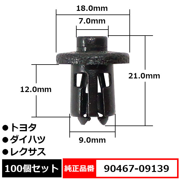 F/バンパークリップ フェンダークリップ プッシュリベット 純正品番 互換 90467-09139 トヨタ ダイハツ レクサス 100個セット