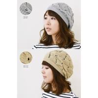 ベレー帽 レディース 【メール便のみ 送料無料 】 帽子 ニット 透かし編み サマーニット 模様編み アクリル麻 選べる4色 春夏 メール便×2