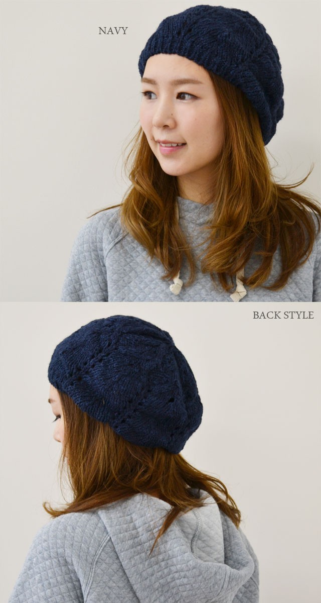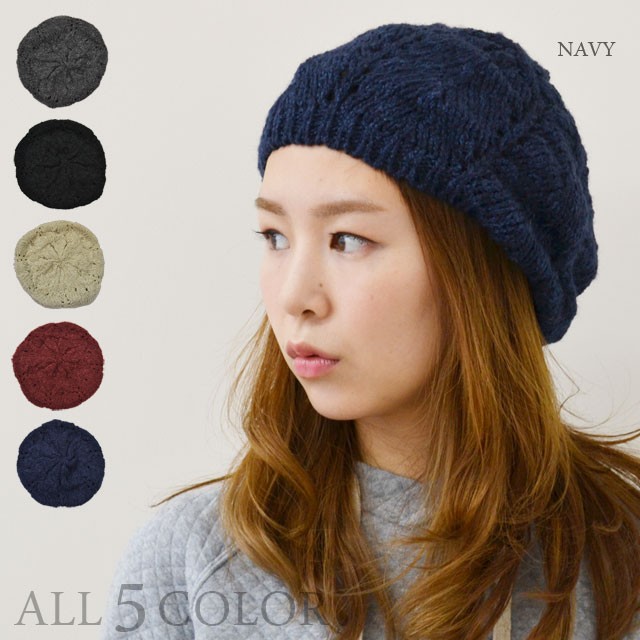 ニット帽 ベレー帽 レディース 【メール便のみ 送料無料 】 帽子 ウール 模様編み 選べる5色 アクリル混 ベレー 秋冬 メール便×1 デザイン編み