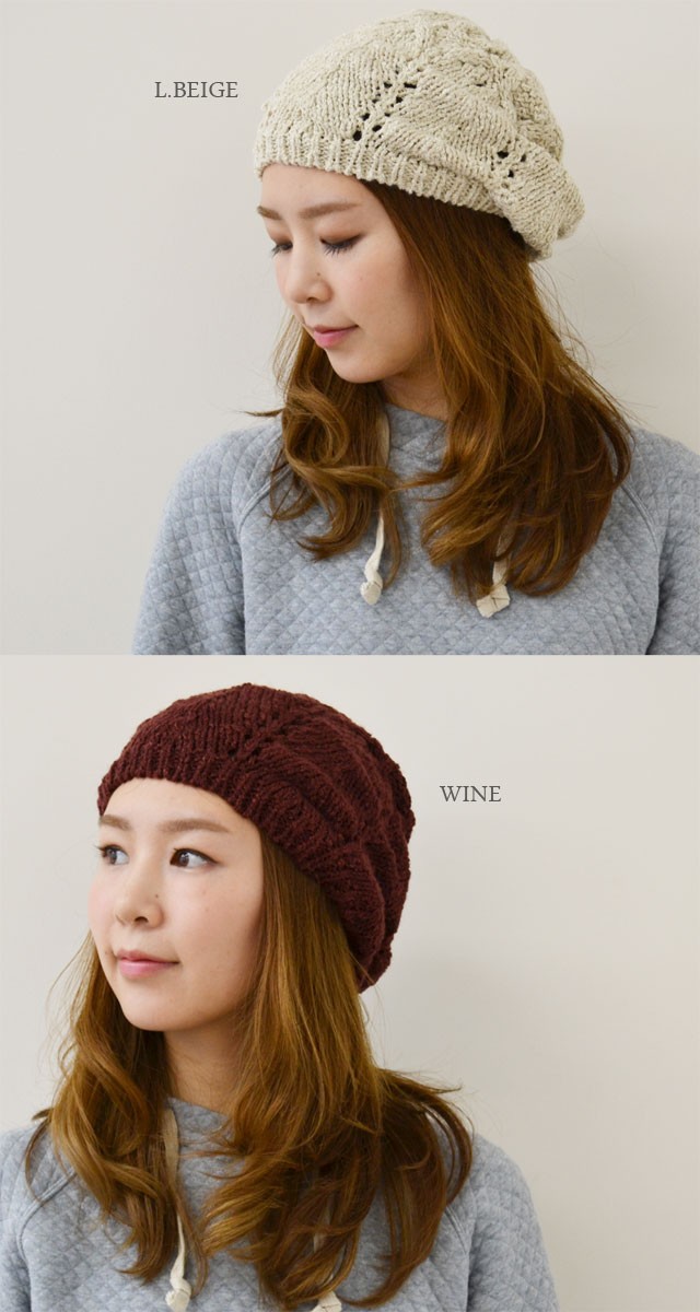 秋冬に大活躍のウール・アクリル素材のニットベレー帽子です。