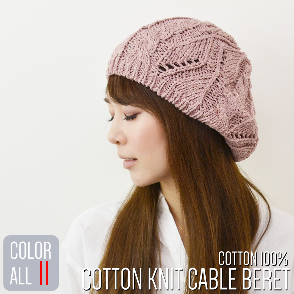 ベレー帽 レディース 【メール便のみ 送料無料 】 帽子 コットン ニット ベレー帽 模様編み ケーブル透かし編み 爆買 選べる7色 レディース ベレー 春夏