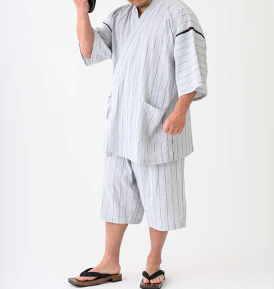 甚平 メンズ 大きいサイズ セットアップ ストライプ ゆかた 父の日 和装 部屋着 夏祭り 花火 イベント ルームウェア 浴衣 しじら甚平 ホワイト 3L 4L 5L 6L 7L