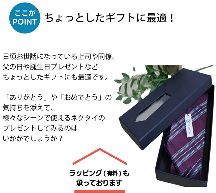 このネクタイは、通常の長さよりもゆとりのある160cmという長さで、どんな体型の方にも合わせやすく、快適に巻けるのが魅力です。