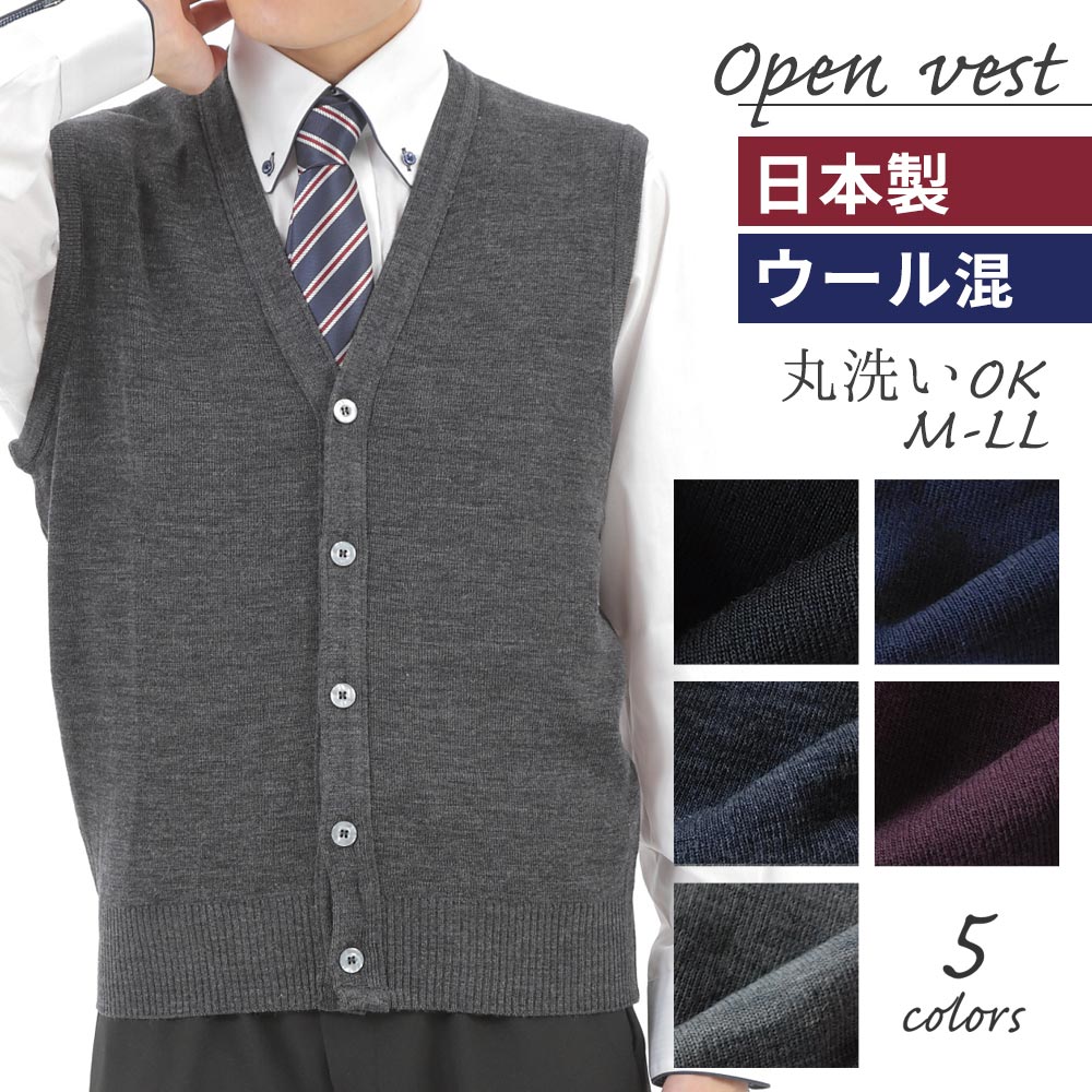 ニットベスト メンズ セーター Vネック 前開き 無地 日本製 洗える ウォッシャブル トップス ビジネス カジュアル 家庭洗濯OK ギフト M L LL