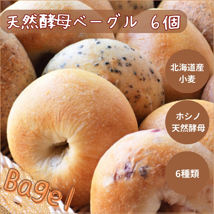 天然酵母 ベーグル 6個セット 北海道産小麦 天然酵母100% 冷凍 送料無料 (※地域別追加送料をご確認ください) 無添加 ギフト 内祝い