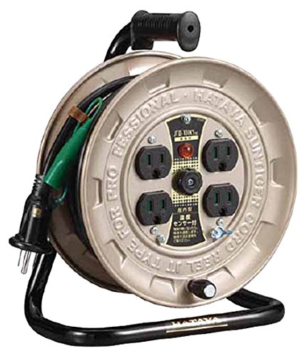 商品名:ハタヤ (HATAYA) コードリール 小型 コンパクト 屋内用 100V型 コード10m 太さ2.0? 標準型 接地付 温度センサー内蔵 (電線溶解防止機能) コンセント4個 コンセント防塵シャッター 家庭用 工場用 建設現場 軽作業 JTIII JTIII-101KS