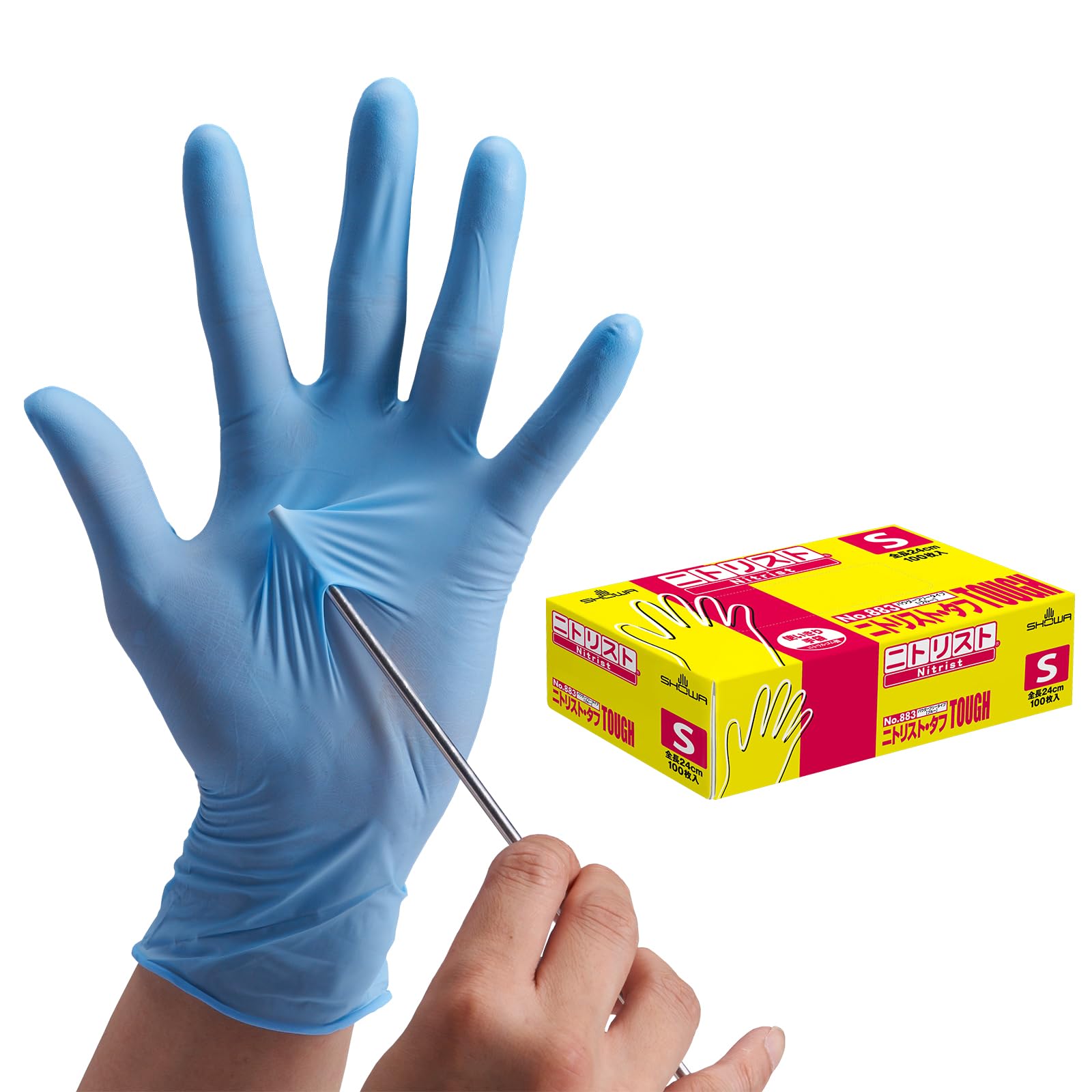 ショーワグローブ 【食品衛生法適合・左右兼用・パウダーフリー】 No.883 ニトリスト・タフ 100枚入 ブルー Sサイズ 1函 ニトリルゴム 使い