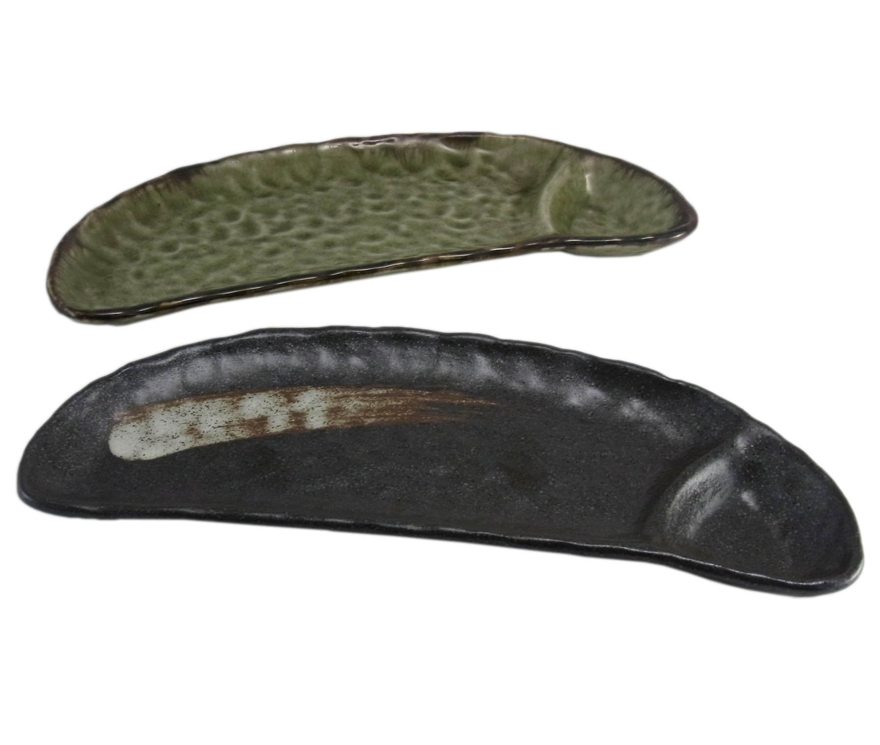 商品名:粋な仕切リ皿2P(緑釉・黒刷毛) 231091