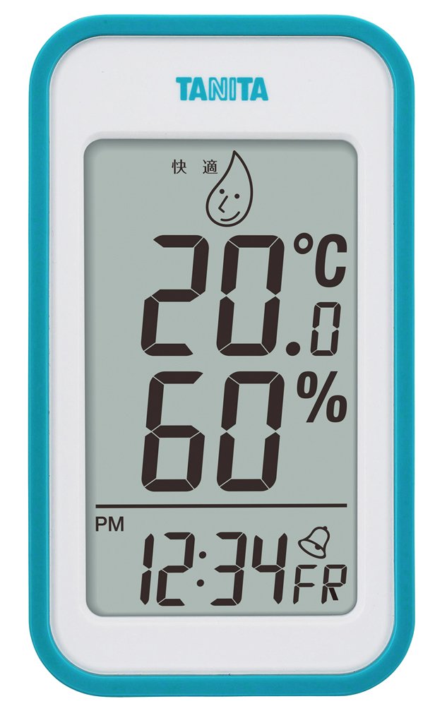 タニタ 温湿度計 大画面 一目で室内環境がわかる 時計 カレンダー アラーム 温度 湿度 デジタル 壁掛け 卓上 マグネット ブルー TT-559 B
