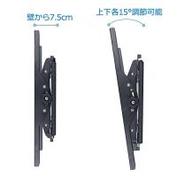 【角度調整・適度な厚み】上下各15度角度調整可能、場所や目線に応じてテレビを見やすく設置できます。壁からの距離は7.5cm、テレビ裏に配線スペースと上下稼動域を確保しながらもスタイリッシュな壁掛けが可能です。
