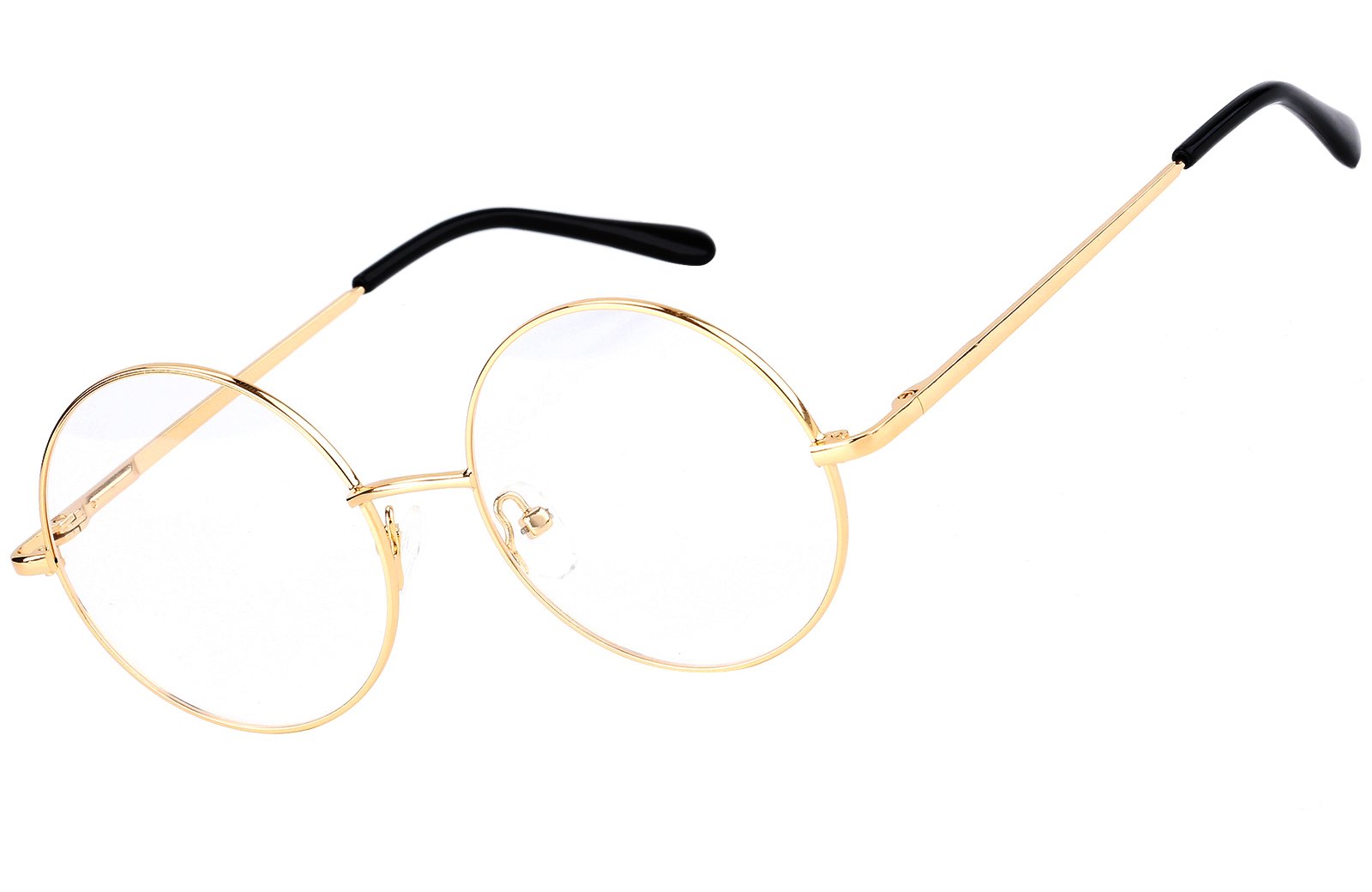 (イェーガー)Agstum ラウンド 復古円形眼鏡 潮流金属フレーム眼鏡 バネ蝶番 男女兼用 (46mm (中間サイズ), ゴールド)