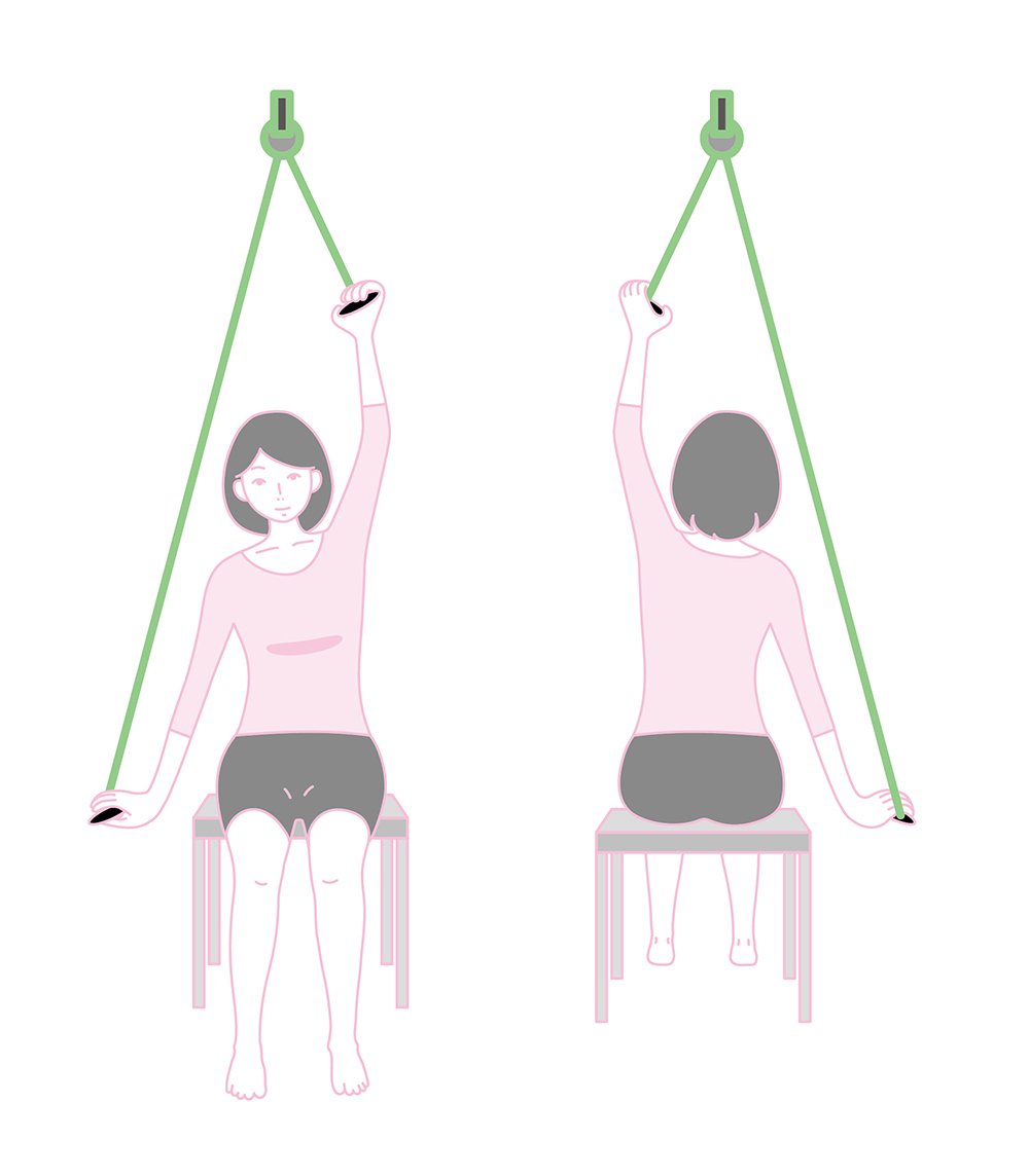 【使用目的】自分では「ほぐし」にくい肩甲骨まわりを滑車の力を借りて大きく動かすことでセルフマッサージができます。/日常生活では動きの少ない肩甲骨、肩関節を自然に大きく稼働させるストレッチができます