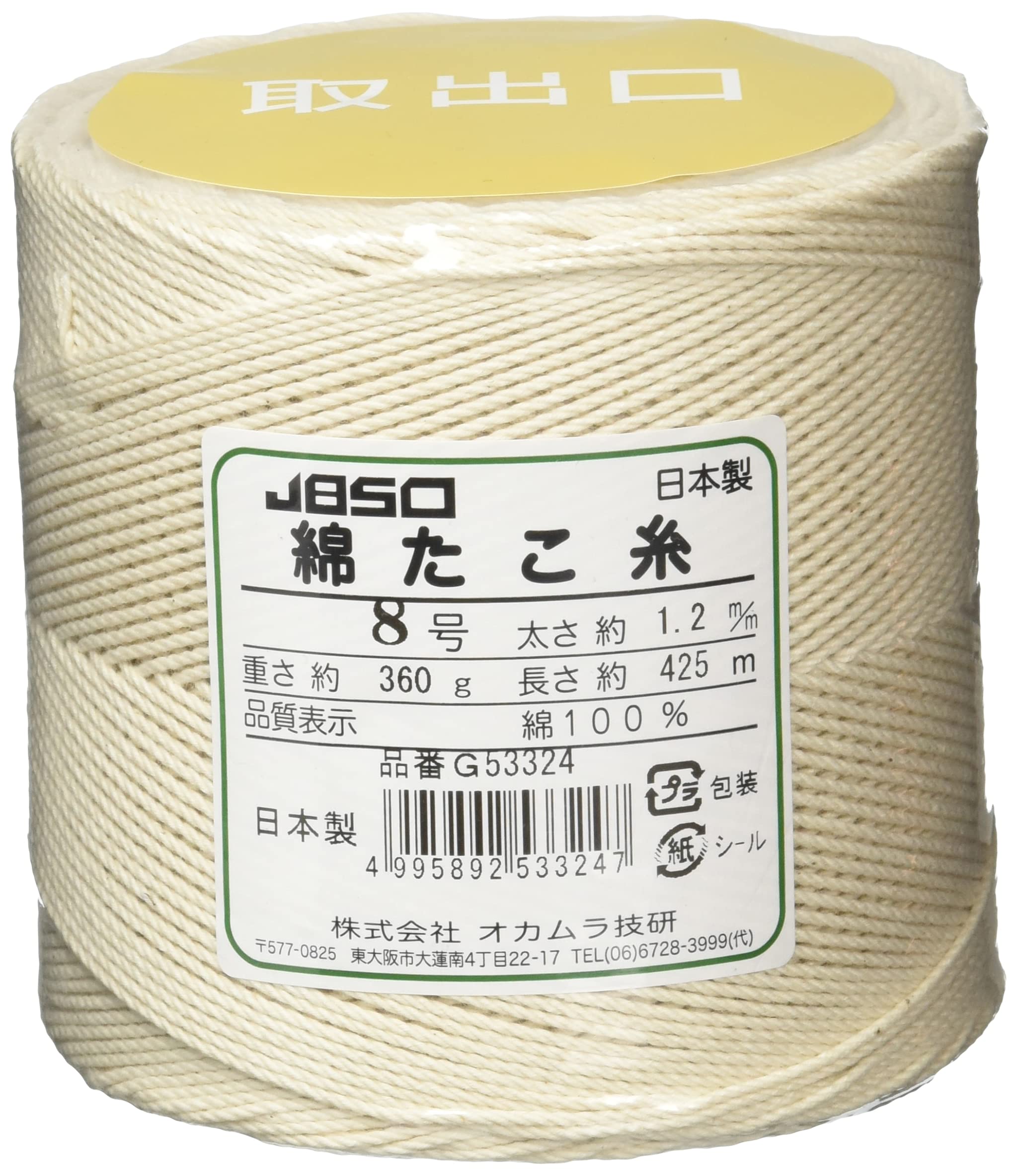 商品名:オカムラ技研 JBSO 綿たこ糸 360g 8号 425m G53324