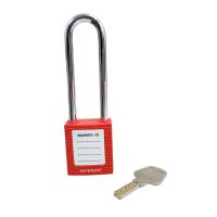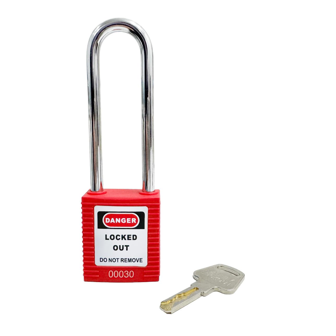 セーフラン ロックアウト用弦長パドロック 赤 本体:高性能プラスチック、ナイロン 吊:炭素鋼(クロムメッキ) キー2本付属 吊径φ6mm x H76m