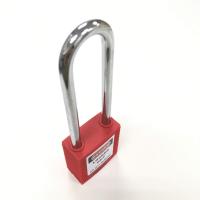 ロックアウト用弦長パドロック 本体:高性能プラスチック、ナイロン 吊:炭素鋼(クロムメッキ) 対応温度-20~120度 キー2本付属 吊径φ6mm x H76mm 赤