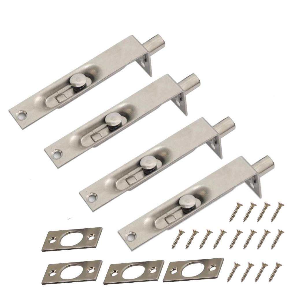 4個のパック(2ペア)NUZAMASドアフラッシュボルト4インチ(10cm) - ヘビーデューティステンレススチールドアエッジレバースライドボルトラッ
