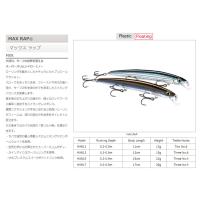 大河川、サーフの世界を変えるスーパースリムシャローミノー、マックスラップに新色登場!ローリングを基本としたナチュラルウォブンロールアクション。スローでもきっちり泳ぎ、ファーストや河川の強い流れ、サーフの引き波の中でも安定したスイミングバランスを発揮します。着水後の立ち上がりの速さや、様々なロッドワークに素早く追従するスイミングレスポンス。適度にアクションが手元に伝わる心地良いリーリングフィールは、流れの変化や引き波をダイレクトに捉えます。ただ巻きではラパラ伝統の「弱った小魚」を演出できます。ラパラ独自の重心移動システムにタングステンボールウェイトを採用。空気力学から計算されたスーパースリムボディ。ラインアイにはオーバルリングを採用。VMCプレミアムスパークポイントフック採用。