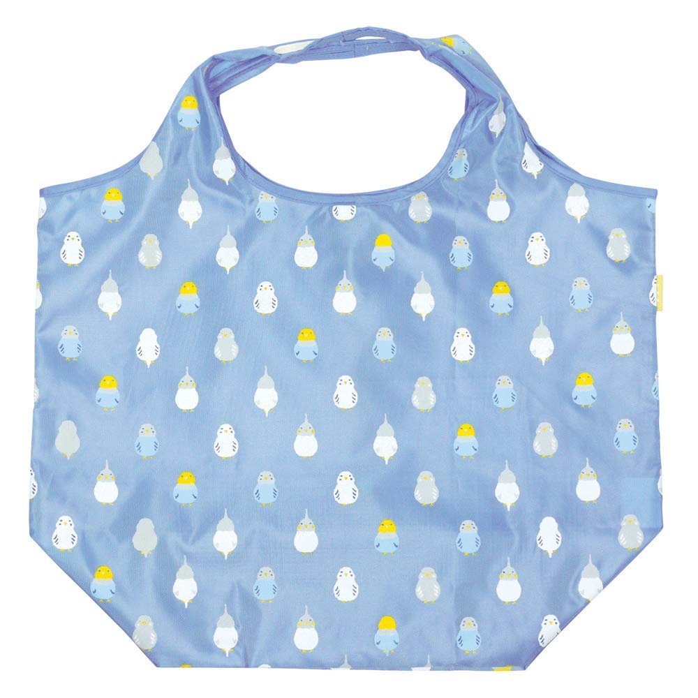 商品名:[濱文様] エコトート大 インコ並べ ブルーグレー