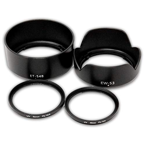 Canon キヤノン レンズ フード EW-53 互換品と レンズ フード ET-54B 互換品 と レンズ保護フィルター(49mm、52mm 各1枚)の4点セットです。