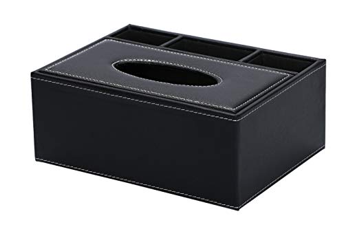 ティッシュケース リモコンラック リモコン スタンド 小物入れ 卓上 収納 人工皮革製 ブラック