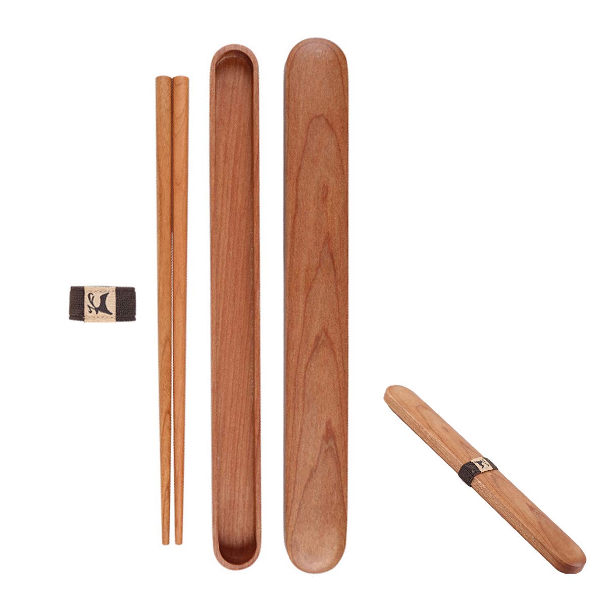 Yilan Trade 天然木製 箸 和風 お箸 箸箱セット 木の箸 抗菌 弁当箱用 食堂用 中華料理用 携帯用カトラリー (さくらんぼの木)