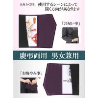 【男女兼用 オリジナルカラー】 「紫×京紫」「黒×紫紺」の2色 当社だけのオリジナルカラーをご用意しています。 格調高く、おしゃれな色使いで、男性、女性を問わず、慶弔どんな場面でも安心してお使い頂けます。 【国産品質 高級素材】 「最高品質」国内専門メーカーが製造。独自開発の「剥がれにくい接着剤」を使用し、熟練の職人の技術によって、ひとつひとつ丁寧に手仕上げしています。 型崩れしにくく、はがれにくく、長くご愛用いただけます。「素材」独特のしぼが美しいちりめん素材を使用し、高級感抜群です! 【ポケットタイプで使いやすい】 たたむ袱紗とちがって、ポケットに差し込むだけ。スマートに出し入れできます。 【意外と出番が多いです】 結婚式、ご祝儀袋、 出産や入学・卒業などのお祝い、その他お月謝やお礼をお渡しする時。お葬式、香典、お布施袋、法事の時など 様々なシーンで、相手へのマナーとして必要なものです。数珠袋としてもお使い頂けます。 【サイズ 仕様】 約12×20cm(一般的な のし袋に対応します、特大サイズには対応しません) 「のし袋対応サイズ」 10.5×18.5cm 表地:レーヨン100% 裏地:レーヨン100% 日本製
