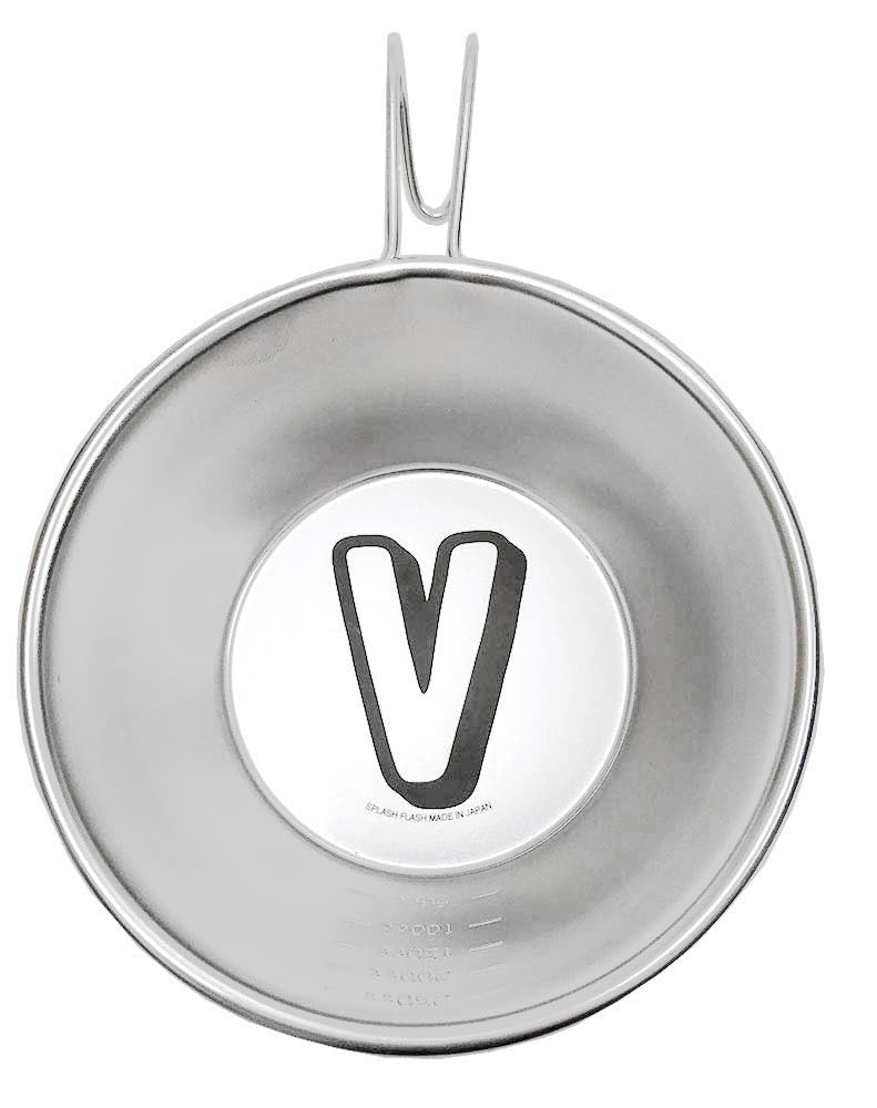 商品名:SPLASH FLASH アルファベット シェラカップ ステンレス 直火 イニシャル 目盛り付き 浅型 日本製 燕三条 (V)
