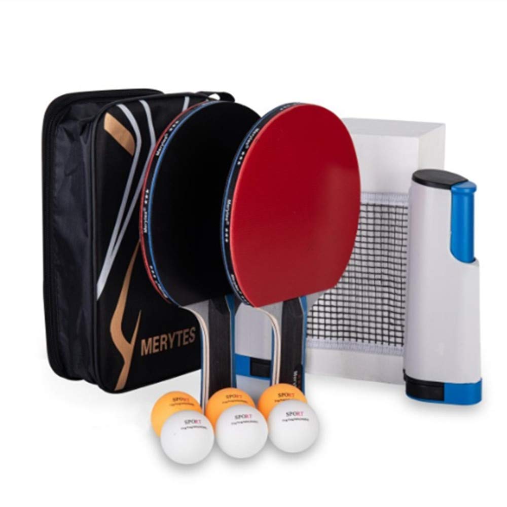Merytes ポータブル 卓球 ラケット ポータブル 卓球セット ラケット2本 ピンポン球6個 卓球用品 卓球ラケット 卓球ボール (ブルー)