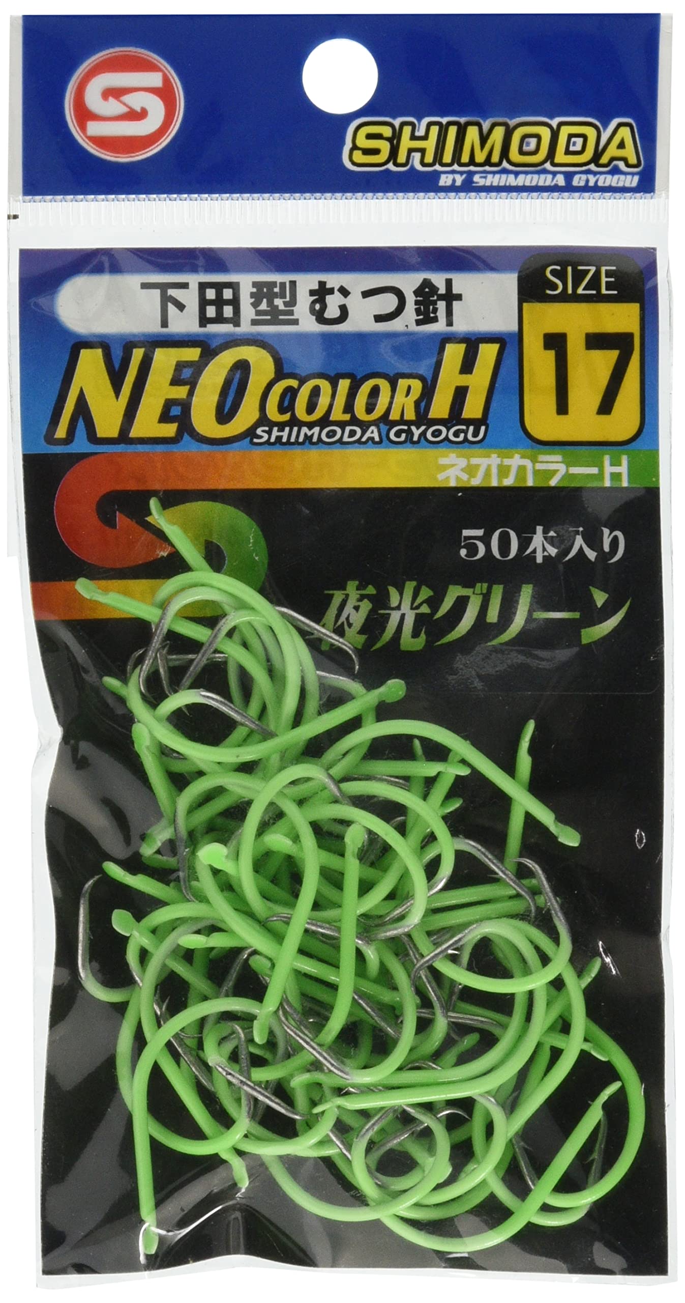 商品名:下田漁具 HP 下田型むつ針 ネオカラーH 17号 50本入 夜光グリーン