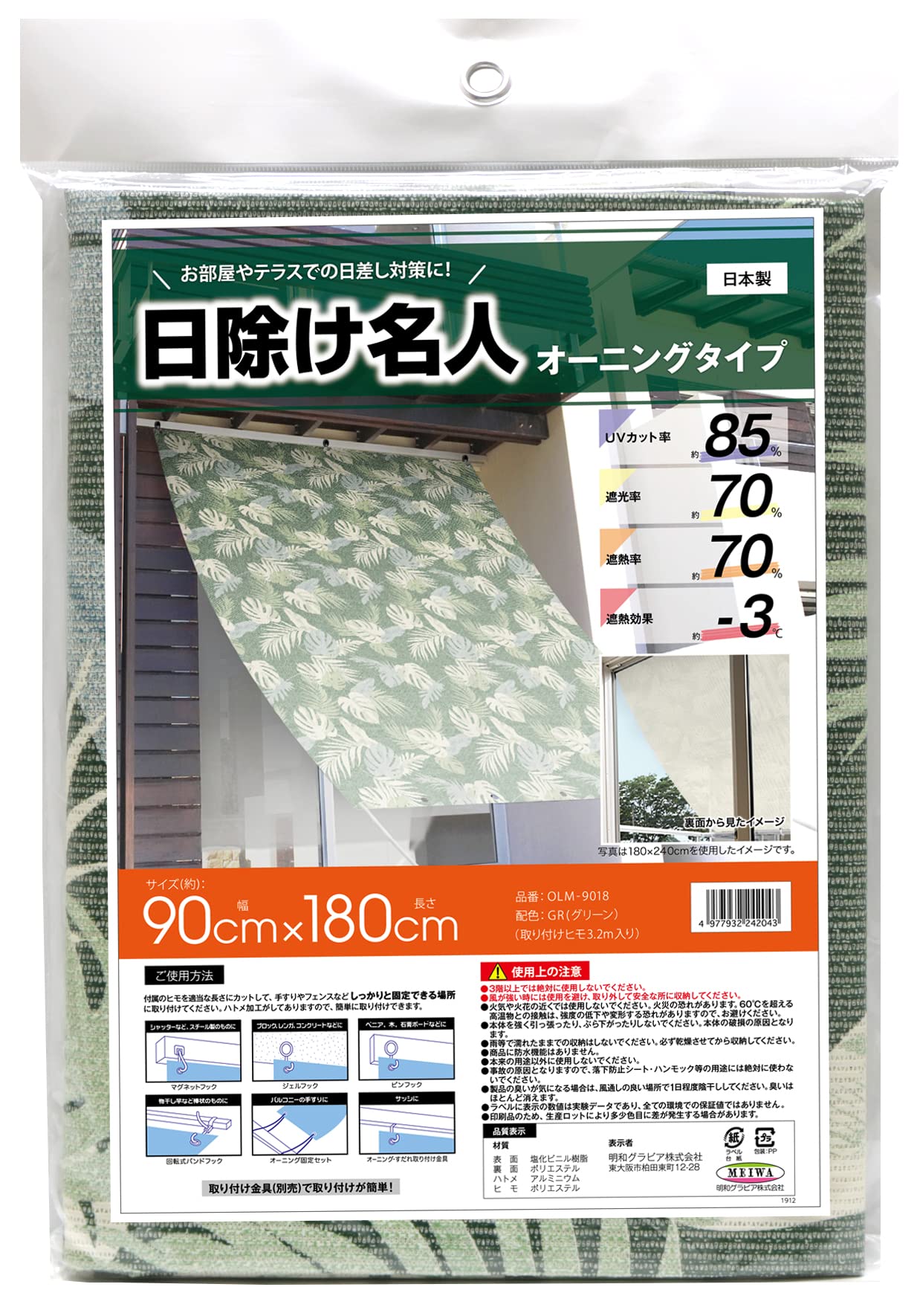 商品名:明和グラビア 日除け名人 オーニング バナナリーフ(グリーン) 90×180cm丈 OLM-9018