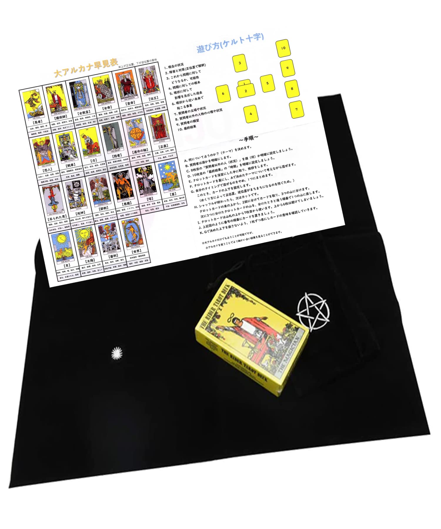 TJQ タロットカード 初心者入門セット 日本語説明書付き ベルベット タロットクロス スピリチュアル タロット 星座 運勢 占い (オリジナル)