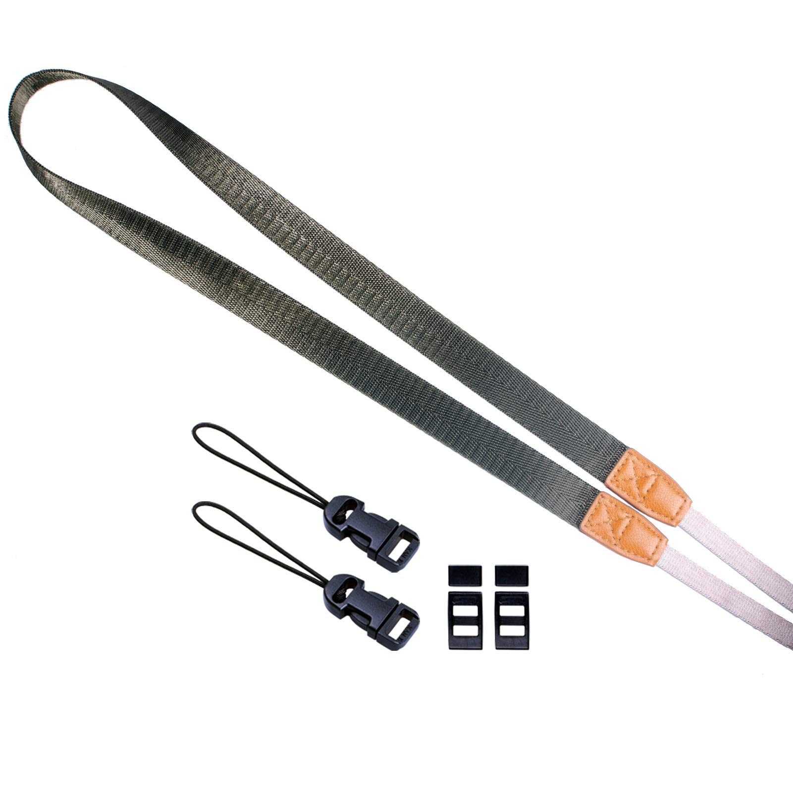 【調整可能】ストラップのバックルが2個付いています、必要に応じてストラップの長さを調整できます。2個のクイックリリースバックルも装備されています、カメラを三脚などに置くと、ストラップをすばやく外してカメラを取り外すことができます。