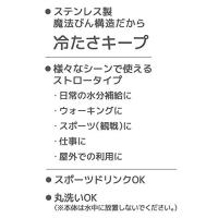 素材・材質:内びん/ステンレス鋼、胴部/ステンレス鋼(アクリル樹脂塗装)、フタ・キャップ本体/ポリプロピレン、飲み口/シリコーンゴム、ストロー/ポリエチレン、パッキン/シリコーンゴム